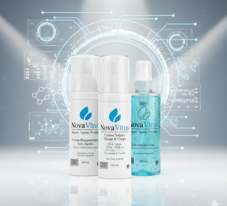 Découvrez la gamme Anti-Taches NovaVitus, scientifiquement formulée pour la peau marocaine : un protocole complet en 3 étapes — gel nettoyant, crème dépigmentante et crème solaire SPF 50+ — tout en une seule marque, pour éliminer les taches, uniformiser le teint et les empêcher de revenir.